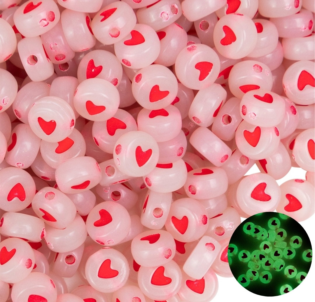 400u aprox brillan en la oscuridad, corazones rojos (50g)