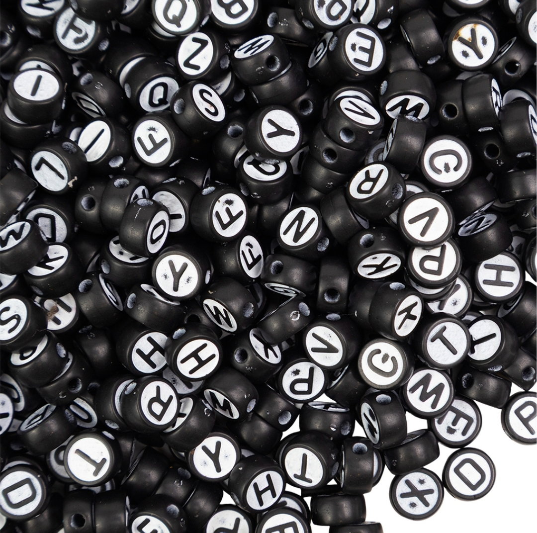 Cuentas plásticas, letras y números