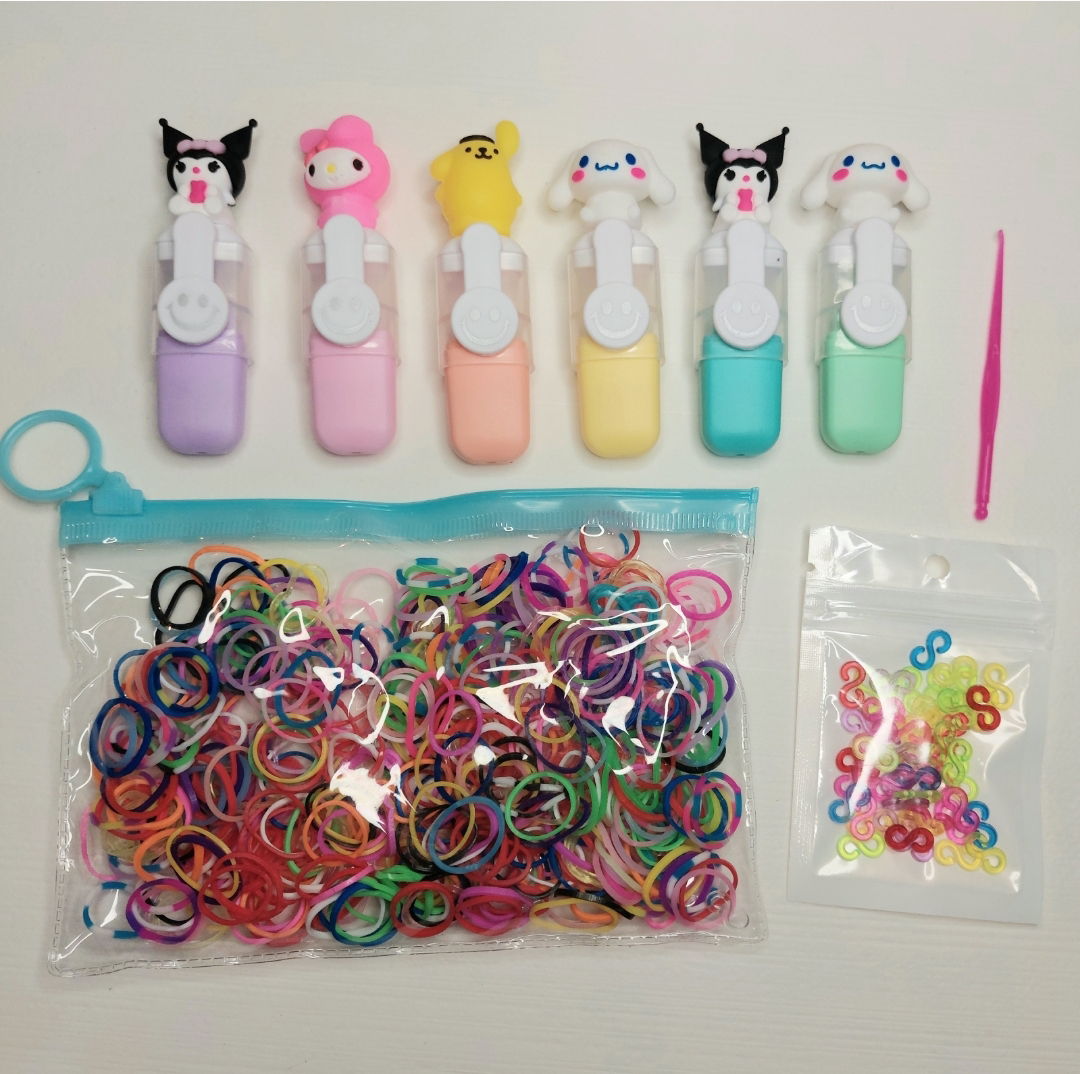 Kit Loom Bands - 500 gomitas + resaltadores con tapa reutilizable