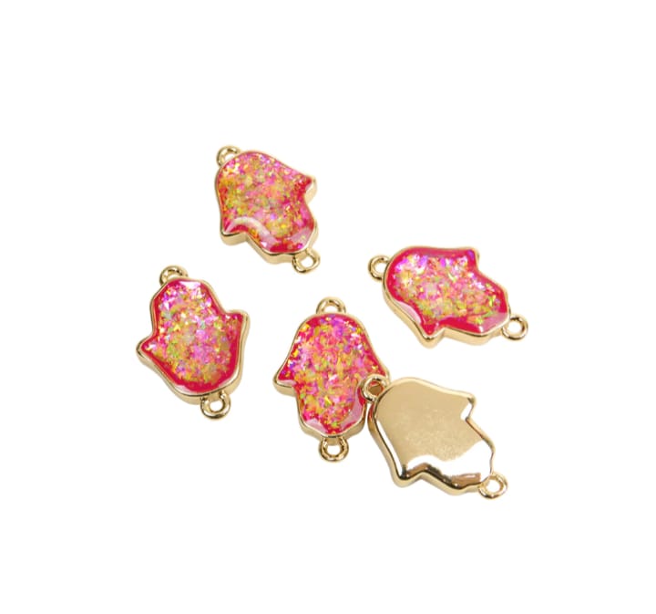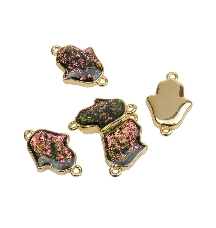 Mano hamsa con borde dorado 18k x unidad