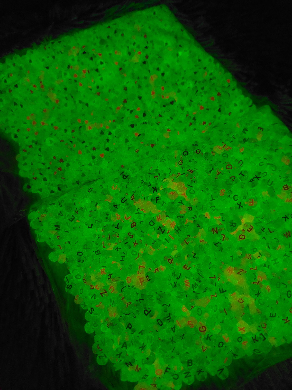 Letras luminosas 7x7mm (brillan en la oscuridad) 400u aprox (50g)